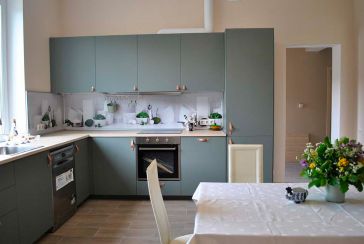 Стены дома из керамических строительных блоков Wienerberger. Внутри стены окрашены. Снаружи облицованы фасадным огнестойким негорючим утеплителем и подготовлены под фасадную штукатурку. Фундамент дома - монолитная плита на свайном поле. Кровля- цементно-песчаная черепица. Окна - ПВХ. В кухне новая мебель, холодильник и посудомойка. В санузлах сантехника. Комнаты второго этажа частично меблированы. Дом построен качественно, с любовью, для себя.